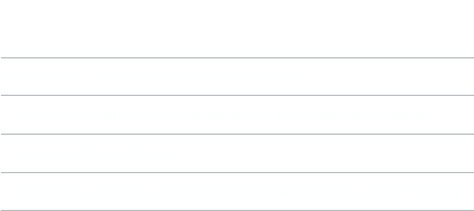 Anyone seeking self-mastery, clarity, better decision-making, and internal alignment.